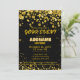 Modern and elegant all purpose party invitation template with rich dark gold glowing confetti glitter on a black background.You can easily customise the text for any occasion if you'd like. You can also change the background colour. Design by Amelia Carrie for zazzle.com/GlitterInvitations