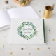 Stylish wedding guest book done in an white textured look and lovely watercolor looking graphics of a green foliage wreath, on the front. The back of the guest book has two sprigs of greenery and a coordinating green edge accent decorating the front and back of the book. Personalise the custom text fields, for your wedding day.