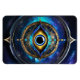 Protect your self and your valuables from bad actors with this all seeing Evil Eye symbol. Yellow eyeball with a blue iris and a very wide pupil set into a mystical amulet and backed by the vastness of the heavens.