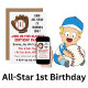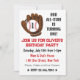 For baseball enthusiasts! A fun boy's 1st birthday party invitation. Brown glove with a red and white baseball featuring the number 1. Athletic sports typography. Birthday boy. Boy's First Birthday.