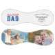 Add your personalised HAPPY FATHER'S DAY message with two photos on this ALL STAR DAD designed keepsake softball. All text is editable to change to fit your needs. PHOTO TIP: For fastest/best results, choose a photo with the subject in the middle with lots of space around the subject and/or pre-crop it to a long, narrow rectangle with plenty of space around the subject BEFORE uploading for a better fit in the photo frame wrapped around the ball. Contact the designer via Zazzle Chat or makeitaboutyoustore@gmail.com if you'd like this design modified.