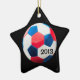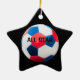 This ornament salutes the all star player(s). A great gift idea for your "all star" or "all star" team. Unique soccer gift ideas in red white and blue. Quality Soccer Ball gifts are hard to find. Here are unique designs with high resolution digital photos to make that unique gift. These are completely customisable by adding a name or changing the type that is already added. The type can be changed by colour, font, size and or location. Add a team name, league or year played.