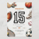Get ready to celebrate with our all star sports 15th birthday invitation, perfect for your little All-Star! Whether it's for a game sport party or a special teens birthday invite, this sports-themed printable is sure to excite any boy who loves sports. Let's have a ball and make this all sports birthday celebration one to remember! Customize text, color, fonts like you want, just click <<personalize this design>>.