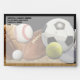 Awesome sports all-star matching product set features soccer ball, baseball or softball, basketball, football, tennis ball, golf ball, football and a brick wall with blackboard theme. Perfect for your sports personal training or fitness business, for personal use or for a youth league or kids children's team.
