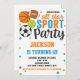 Score big with this All-Star Sports Birthday Invitation! Perfect for little athletes and sports lovers, this customisable design features bold colours and playful elements from soccer, basketball, football, and baseball. Easily personalise with your child’s name, age, party details, and photo to create a memorable invite for an action-packed celebration. Great for boys and girls who love sports! Ideal for toddler to tween birthdays, sports-themed parties, and team celebrations. Printed on high-quality paper with fast shipping—get the game started today!