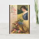 A vintage illustration Thanksgiving postcard featuring a woman and a cornucopia of fruit with the text "All Thanksgiving Bounty Be Thine."