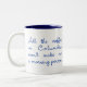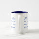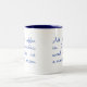 Written in a Navy Blue hand writing style font on both sides of the mug.