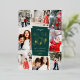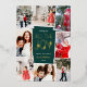 Fun and festive holiday photo card in a modern jewel tone colorway features eight photos arranged in a collage layout. "Wishing you all the joy" appears in the centre in gold foil lettering on a hunter green background accented with stars. Personalise with your personal greeting, your family name, and the year.