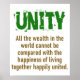 Unity brings people together. Let the world know how you feel with this unity-themed quote: All the wealth in the world cannot be compared with the happiness of living together happily united.