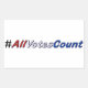 The words, All Votes Count, is written in the colours red, white, and blue, and are outlined in black, on stickers. There is a black hash tag that precedes the words, to encourage people to start using this phrase to help change the voting process in the United States, where all votes count. Thank you for shopping at CherylsArt on Zazzle.