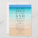 Beautiful beach scene wedding invitation with the saying "All we need is love and the beach". Customised with your wedding details.
