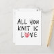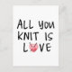 All you knit is love with heart shaped red yarn postcard