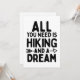 All you need is hiking and a dream. For the person who loves going hiking - for adults, children & teenagers. Great gift for Christmas, birthdays, Mother's day, Fathers day, for yourself