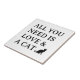 All you need is love and a cat cute ceramic tile. Funny quote for cat lover / pet owner. Animal slogan with black kitten silhouette.