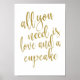 An elegant cutting edge wedding sign, features the text "All you need is love and a cupcake" in a extroverted script font, the glitter texture adds a festive and glamorous touch. The background color can personalized according to your needs and preferences, please contact me if you have any special request.