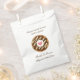 All you need is love and a doughnut custom wedding Favour Bag. Cute personalised design with funny slogan and names of bride and groom. Handy for delicious favours like desserts, sweets, cookies, baked treats and doughnuts of course. Coral pink heart or custom colours. Chocolate brown doughnut drawing with heart logo. Change fonts and colour palette to match your theme.
