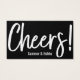 In a casual, modern handwritten script font, I created a graphic overlay that reads, "All you need is love. Love and a free drink. This one is on us!" On the back, in the same pretty type, the graphic overlay reads "Cheers!" Template fields at the bottom were set up using the words "Good for One Free Adult Beverage", on the front, and holding a space for your names on the back. *****PLEASE NOTE that the graphic depicting "Cheers!" was left quite large; I've intentionally allowed the image's text to run outside the "safe" lines. Please note that this was a conscious design decision but if you're concerned about the potential that the text could be cut off a bit in production, please feel free to click for further editing and simply reduce the size of this graphic. Alternately you may certainly reach out to me for assistance! All text is white and the editable background is black which can be changed to any colour you wish. After the seriousness of your special event, some will appreciate the humour of a casual, lighthearted, funny drink coupon. // 62 // Designed by Melody Watson for Paper Muserie.