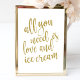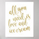 All you need is love and ice cream Gold 8x10 Sign