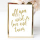 An elegant cutting edge wedding sign, features the text "All you need is love and tacos" in a extroverted script font, the glitter texture adds a festive and glamorous touch. The background color can personalized according to your needs and preferences, please contact me if you have any special request.