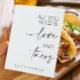 This minimal style 'All you need is love and tacos' sign is a stylish way to decorate a food table at your wedding if you're offering your guests a taco bar, or have a Mexican theme. It comes in four sizes and only the names below can be edited.
