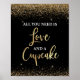All You Need is Love & Cupcakes Black & Gold Sign