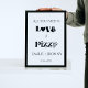All you need is love and pizza. sign for a wedding shower or rehearsal dinner party The modern romantic design incorporates traditional black letters.