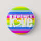 All you need is love white on rainbow stripes 6 cm round badge