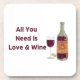 All You Need is Love & Wine with a wine glass and wine bottle on a beverage coaster set. Great conversation piece to protect your furniture.