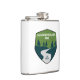 The flask itself is fine. It’s a cheap flask, obviously bought in bulk, however am prepared to overlook that. Given that it is a personalized item, I would have liked to have seen gift boxing instead of the generic packaging. Terrible printing, and/or quality. It’s a cheap, tacky vinyl. It is not cut straight and is also applied in a way that it is overhanging the bottom, causing the glue to catch on items and it will eventually roll and tear, damaging the wrap.