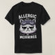 A humourous illustration of a grumpy cat wearing a purple sleep mask with eyelashes. The cat has a white fluffy face and is frowning with closed eyes. The text "ALLERGIC TO MORNINGS" is written in a bold font above and below the cat, with a decorative line separating the words. The design is simple and eye-catching, with a clear message that will appeal to cat lovers and anyone who struggles to get out of bed in the morning.