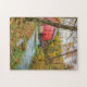 A jigsaw puzzle featuring a photo of Alley Roller Mill and Spring in Eminence Missouri during the fall season. The Mill and Spring are part of the National Park Service.