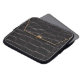 A fashionable statement in a colour that works with many clothing styles, this 10” Laptop Sleeve is designed to look like an alligator envelope clutch bag. The original collage by ZoeSPEAK is made of a chocolate brown alligator texture, with the envelope flap of the clutch purse outlined with a gold band and gold buttons, and a large gold jewellery fastener button closure in the centre.