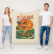 This kitschy throwback beach art is 'only in Florida' energy! A wild pin-up catches a wave as she rides an alligator like a surfboard. The surf beach at sunset scene has bold orange and red colors, complete with palm trees blowing in the tropical breeze. This soft and cozy white sand fleece throw blanket is perfect for beach homes, surf shacks and anywhere a little Florida chaos feel right. | The matching throw pillow is available in my store.