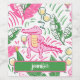 Pink alligators on white background with bottles of wine and glasses on a wine bottle. Put a name on your wine bottle label adds a personalised touch to your gift. The alligator pattern can be found on more items in my store, PageCreativeDesigns.