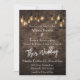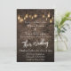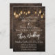 Custom Wedding Invite, Industrial (lighter) Bricks with Edison Lights, white text.