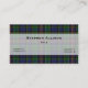 Stylish plaid business card done in the traditional Allison tartan pattern. The front of the card has a black edged semi transparent white band, across the middle of the card, with custom black text. The back of the card is done in white, with a strip of plaid at the bottom, and black text on the white portion. Personalise all the text to suit your needs. Handsome and professional looking business card.