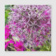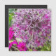 Now that the summer is here it is wonderful to see the gardens full of colorful flowers once more. In this marvelous floral photo design a glorious purple allium is in full bloom surround by vivid shocking pink daisies.