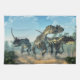 Three allosauruses kick up dust as they hunt along a rocky track created by the passage of large dinosaurs. Deep green plants line the sides of the trail" "while a conifer forest dominates the background. Overhead clouds drift through the blue prehistoric skies. The allosaurus was a theropod dinosaur from the Jurrassic period. Some paleontologists theorise that Allosaurs were pack hunters" "so I though it might be fun to depict a trio of the creatures on the hunt for this latest addition to my paleoart series.