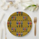 Christmas Nutcracker Trio - Three Nutcrackers are standing side by side on top of a solid gold background. The first nutcracker is dressed in blue and white with gold embellishments. The centre nutcracker is dressed in red and gold with gold embellishments. The third nutcracker is dressed in green and white with silver embellishments. Each one of these nutcrackers are available separately on assorted Zazzle gifts and products. Choose either size of Zazzle paper plates.