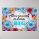 Bring a burst of inspiration to your walls with this stunning customisable poster that boldly proclaims, “Allow yourself to dream BIG.” Set against a backdrop of vividly coloured flowers, each bloom is intricately detailed, inviting you to explore the depths of your imagination. The motivational message is elegantly scripted, with the word “BIG” emphasized to remind you of the limitless potential of your dreams. Perfect for personalising any space, this poster is not just a decoration but a daily affirmation to aim high and dream without boundaries. Ideal for dreamers and doers alike, let this piece spark creativity and ambition in every glance.