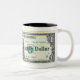 Three one dollar bills merged together in parts to stretch it to wrap around mug. Note: Diliberate disortions were applied and some markings removed.