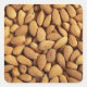 The fruit of the almond is not a true nut , but a drupe , consisting of an outer hull and a hard shell with the seed ("nut") inside. Shelling almonds refers to removing the shell to reveal the seed . Almonds are commonly sold shelled (i.e., after the shells are removed), or unshelled (i.e., with the shells still attached). Blanched almonds are shelled almonds that have been treated with hot water to soften the seedcoat , which is then removed to reveal the white embryo .