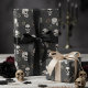 This fun feminine gothic wrapping paper is hand-drawn in black ink by Nathalie Portet, featuring whimsical skulls and blush pink and cream roses and spiderwebs against an almost black background.