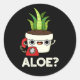 Aloe Funny Plant Hello Pun Dark BG Classic Round Sticker