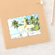 Aloha ! Dream Landscape with a girl inviting us to surfing and have fun, sport, in full freedom. Drawing created with the Computer graphic 3d 2d.