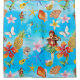 A beautiful Retro and Old-fashioned Design with Hula Girl, animals, palms, on aqua blue background.