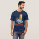 Aloha beaches men's navy blue T-shirt with surf board and sunshine design. This design features Aloha in calligraphy design font with a surfing board and sunshine rays.