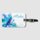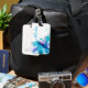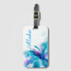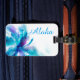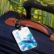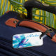 Custom luggage tag is shown in a lovely blue tropical floral print.