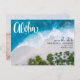Beach destination wedding save the date cards featuring an aerial photo of a beach in an "aloha" design, customised with your names, wedding date and the name of the Hawaiian island you are getting married on. The backside of this Hawaii beach save the date is one of your favourite engagement photos.