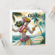 Pretty pop art comic book style ai art. Hula dancer on the beach surrounded by pretty Hibiscus tropical flowers and palm tress with an ocean background.